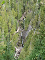 Après cette expérience aérienne, nous rejoignons le lit de la rivière par la Descente aux Enfers, un chemin tout en escaliers de bois, une véritable prouesse technique vu la pente ! 600 marches plus tard, retour sur le Chemin des Draveurs surplombant la rivère puis ballade à travers les sous-bois jusqu'au point de pêche à l'anguille où nous pique-niquons. A ce propos, si vous allez au Canada, n'achetez surtout pas de sandwichs dans un supermarché. Nous en sommes à notre 2e ou 3e tentative et franchement c'est toujours aussi dégueu ! On aurait mieux fait d'aller pêcher des anguilles ;-).